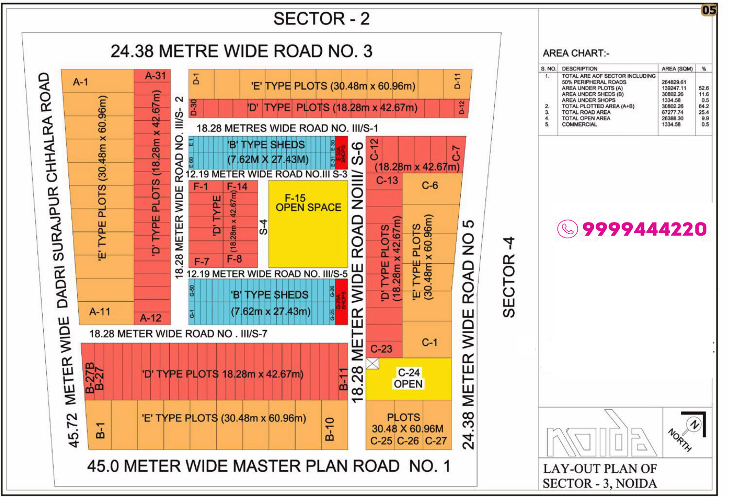 In the case of the Yamuna Expressway Industrial Development Authority (YEIDA) plots (though technically a different authority) in Sector 18/Pocket 3C/5C etc, layouts show 300 sqm standard‐sized residential plots, 12 m to 45 m road widths, green belts and ready infrastructure.